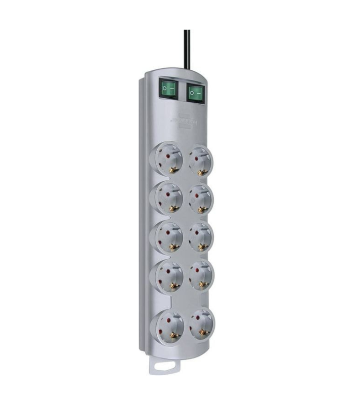 Brennenstuhl Primera-Line Ασημί Πολύπριζο 10 Θέσεων 3500W με 2 Διακόπτες & Καλώδιο 2m