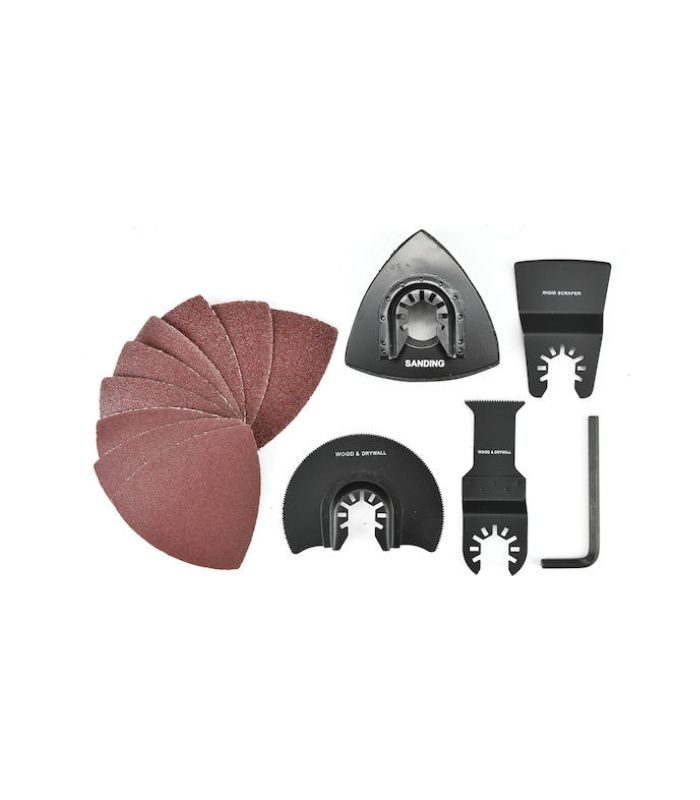 Πολυεργαλείο, κατάλληλο για το ξύσιμο – αφαίρεση ταπήτων, ταπετσαριών, κόλλας, στεγανοποιητικών υλικών, χρωμάτων, αφαίρεσης αρμών μεταξύ πλακιδίων, αφαίρεσης στόκος, σιλικόνης από παράθυρα, καθώς επίσης και για τη λείανση ξύλινων επιφανειών και την κοπή ξύλινων σανίδων κατά την τοποθέτηση δαπέδων κ.α.