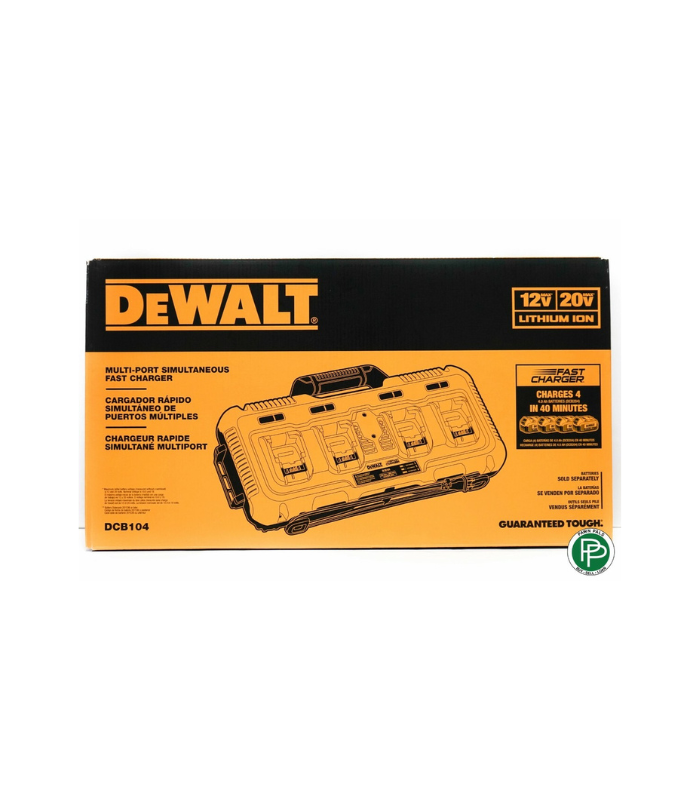 Τέρμα οι στάσεις και οι καθυστερήσεις στο εργοτάξιο λόγω άδειων μπαταριών! Ο Τετραπλός Ταχυφορτιστής DeWalt DCB104 φορτίζει 4 μπαταρίες σε εκπληκτικούς χρόνους! Με 8 Amps τροφοδοσία σε ΚΑΘΕ θύρα, “γεμίζει” 4 μπαταρίες 5.0Ah 18V σε λιγότερο από 50 λεπτά!