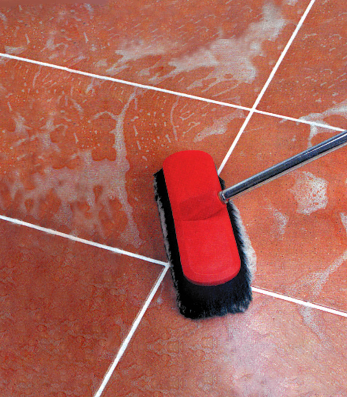 - Τρίψτε με κοντότριχη σκούπα ή σκληρό σφουγγάρι.