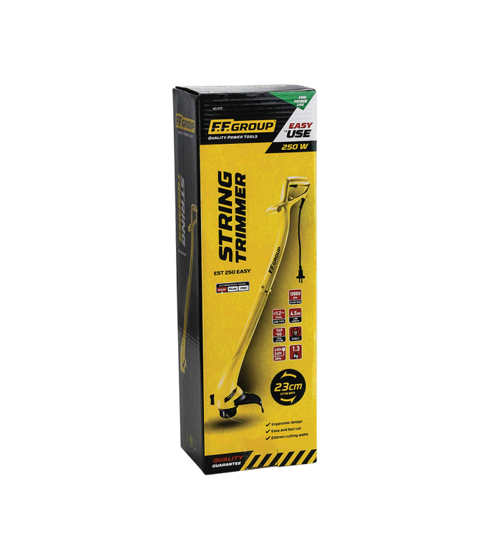 Αρχικά, το F.F. Group EST 250 Easy αποτελεί ένα εξαιρετικά πρακτικό ηλεκτρικό χορτοκοπτικό χειρός 250 Watt. Συγκεκριμένα, η εταιρεία το σχεδίασε ώστε να εξυπηρετεί ιδανικά τη φροντίδα μικρών περιοχών χλόης σε ανώμαλο έδαφος. Επιπλέον, εσείς καθαρίζετε εύκολα τον κήπο σας από τα αγριόχορτα με απόλυτη ακρίβεια.