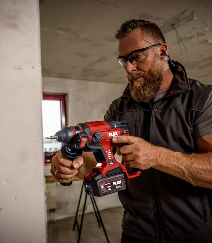 Κρουστικό πιστολέτο μπαταρίας 18V FLEX Brushless (Solo) SDS-Plus. 4 λειτουργίες, κρούση 1.7 Joules. Βάρος 2.0kg.