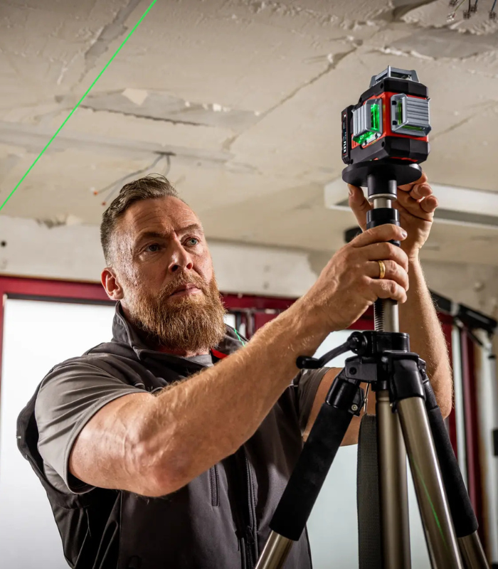 Το εργαλείο διαθέτει προστασία από σκόνη και πιτσιλιές νερού, καθώς και σπείρωμα 1/4″ και 5/8″ για εύκολη τοποθέτηση σε τρίποδο. Είναι ιδανικό για εσωτερικές κατασκευές, ευθυγράμμιση και τοποθέτηση στοιχείων, καθώς και για ποικίλες εφαρμογές σε εργοτάξια, ενώ λειτουργεί με όλες τις μπαταρίες 12 V FLEX, εξασφαλίζοντας απόλυτη ευελιξία και αυτονομία.