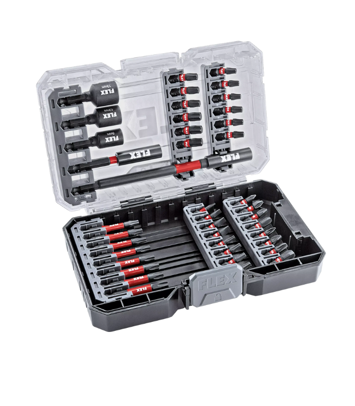 Ένα πρακτικό και υψηλής ποιότητας σετ με κατσαβιδόλαμες, τοποθετημένο σε ανθεκτική κασετίνα που κλειδώνει για ασφαλή μεταφορά. Η έξυπνη σχεδίασή της επιτρέπει την εύκολη στοίβαξη με άλλες συμβατές κασετίνες Flex, χάρη στην πλαϊνή κλειδαριά που διαθέτει.