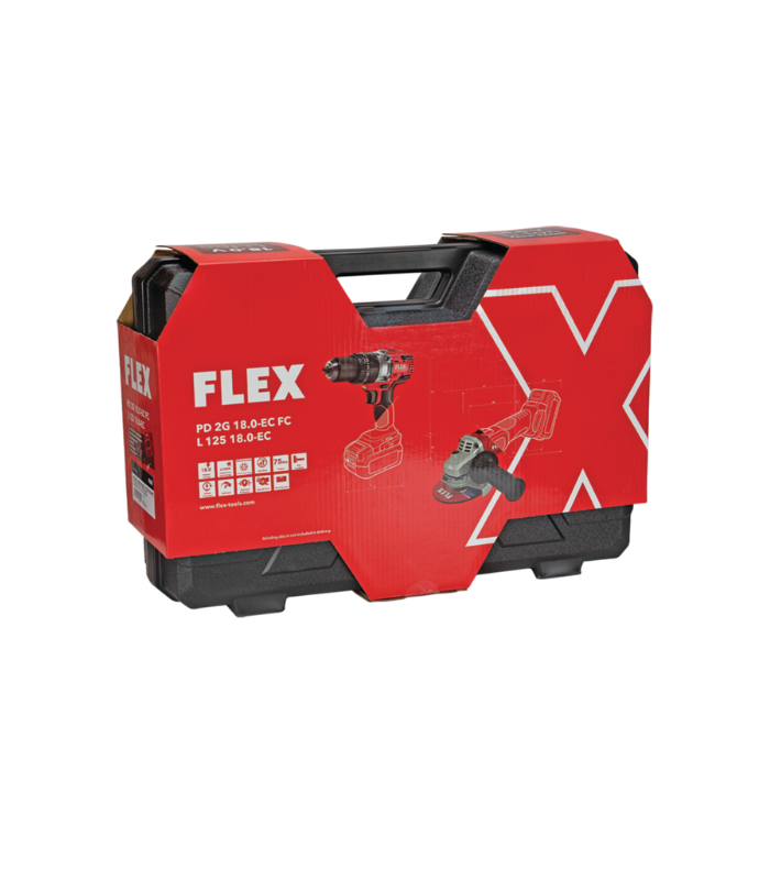 Το επαγγελματικό σετ Flex προσφέρει ισχύ, αντοχή και αυτονομία για κάθε απαιτητική εργασία. Περιλαμβάνει τον Γωνιακό Τροχό L 125 18.0-EC C και το Κρουστικό Δραπανοκατσάβιδο 18V. Συνοδεύονται από δύο μπαταρίες 5Ah, ταχυφορτιστή 9A και ανθεκτική βαλίτσα μεταφοράς.