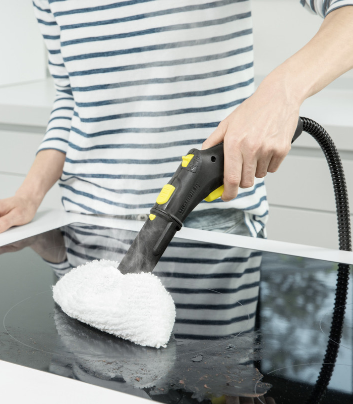 Παράλληλα, φροντίζεις για την υγεία της οικογένειάς σου, καθώς καθαρίζεις χωρίς χημικά προϊόντα. Ο ατμός της Karcher εξοντώνει το 99,99% των κοινών οικιακών βακτηρίων και ιών από τις σκληρές επιφάνειες. Ως αποτέλεσμα, απολαμβάνεις ένα περιβάλλον απόλυτα υγιεινό και ασφαλές. Ειδικότερα, τα πολυάριθμα εξαρτήματα κάνουν τα πλακάκια, τις εστίες και τους απορροφητήρες να λάμπουν σαν καινούργια.
