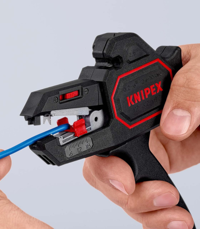 Ο αυτόματος απογυμνωτής καλωδίων Knipex 12 62 180 SB προσφέρει γρήγορη και ακριβή απογύμνωση για όλους τους τυπικούς τύπους καλωδίων 0,2 – 6 mm². Διαθέτει ενσωματωμένο κόφτη για συμπαγείς και πολύκλωνους αγωγούς, καθώς και ρυθμιζόμενο στοπ μήκους 6 – 18 mm για σταθερά αποτελέσματα. Ο εργονομικός σχεδιασμός και η στιβαρή κατασκευή του εξασφαλίζουν άνεση, ασφάλεια και μεγάλη διάρκεια ζωής. Ιδανικός για επαγγελματίες ηλεκτρολόγους και εγκαταστάτες.